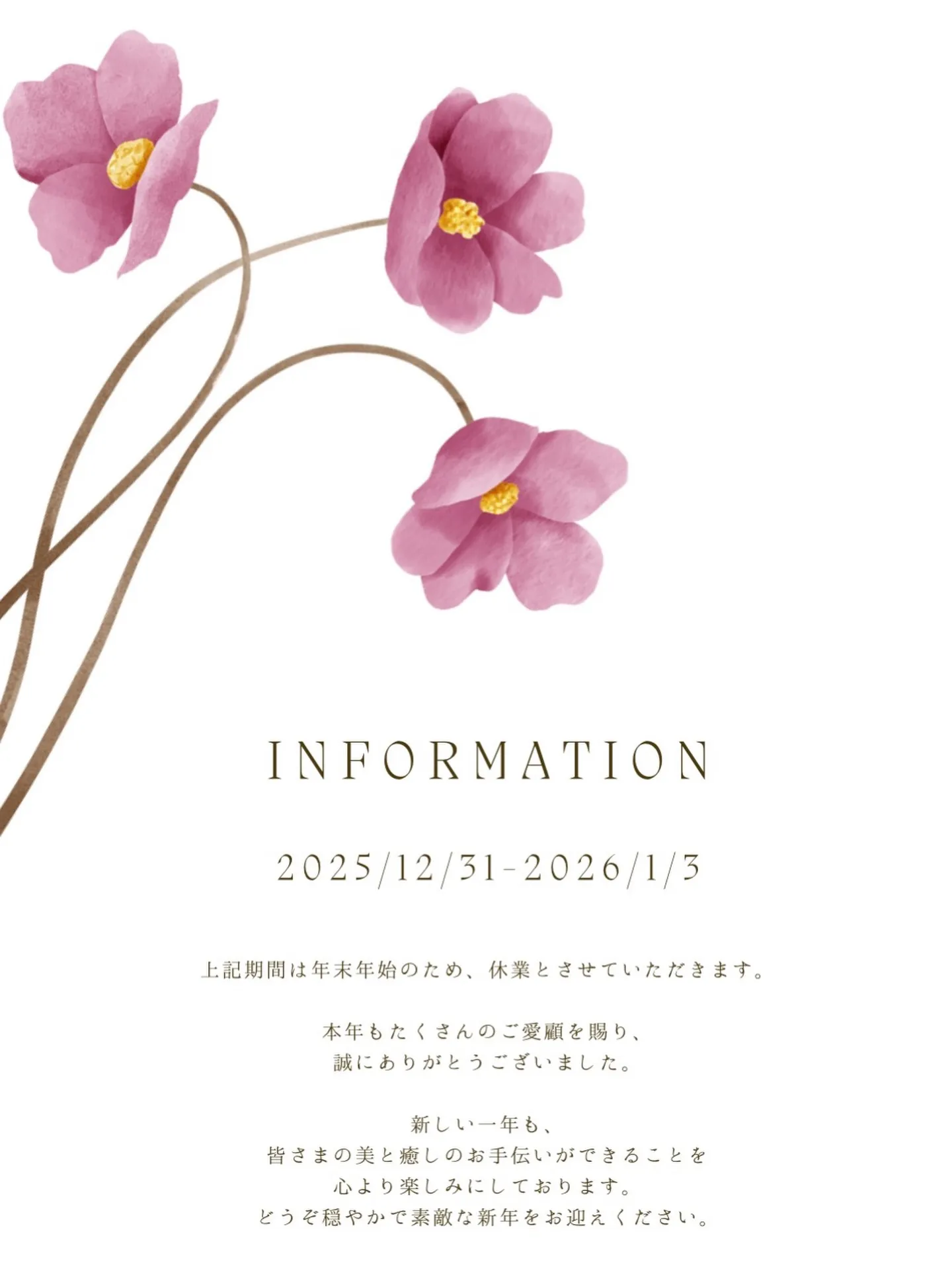 引き続き結果と癒しのどちらも感じていただける時間をご提供できるよう、技術・知識ともに磨いてまいります。